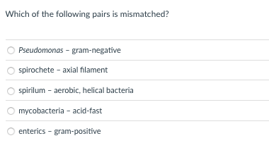 Solved Which Of The Following Pairs Is Mismatched Chegg Com